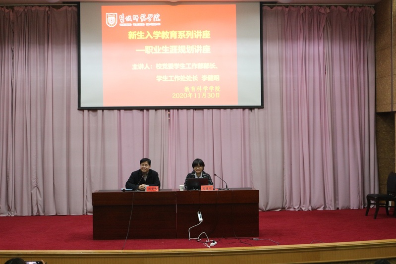 20201130日晚18:307790cnm必发集团邀请了校党委学生工作部部长李健明在国际会议中心开展了职业生涯规划讲座。本次讲座由魏哲峰副院长主持,教科院全体大一新生参与。