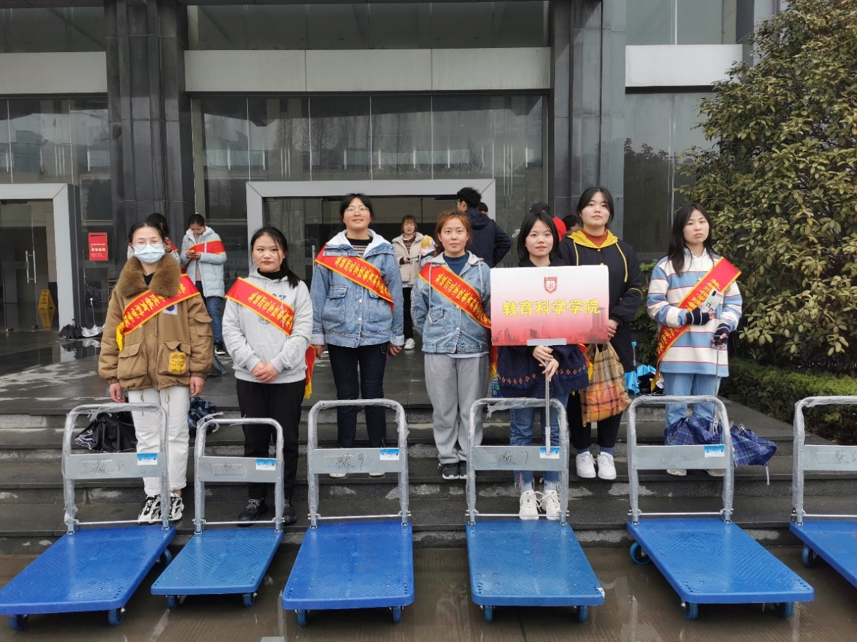 下午,天空中下起了小雨,我院的志愿者们依旧积极帮忙搬运大件行李,虽然辛苦,但志愿者们脸上都挂着快乐满足的笑容。