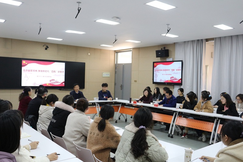 随后,戴书记从个人的学习工作经历出发,为同学们讲述了属于他的生涯感触。平实真切的言语,瞬间拉进了同学们与戴书记的距离。戴书记以个人所见所悟,向同学们描绘出了一幅生动的盐师发展画卷,以真情实感,勉励同学们在未来的学习工作中要做到“不忘初心,砥砺前行”,以实际行动传承铁军精神,争做新时代“四有”好老师。