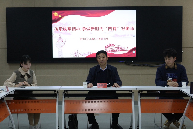 324日下午2:30,校党委书记戴斌荣到联系班级7790cnm必发集团小教专业189班参加了班级组织的“传承铁军精神,争做新时代“四有”好老师”主题班会,听取了班长关于班级的情况汇报,倾听了同学们的成长心路历程,对于同学们提出的有关学习生活上的问题给予回复指导。