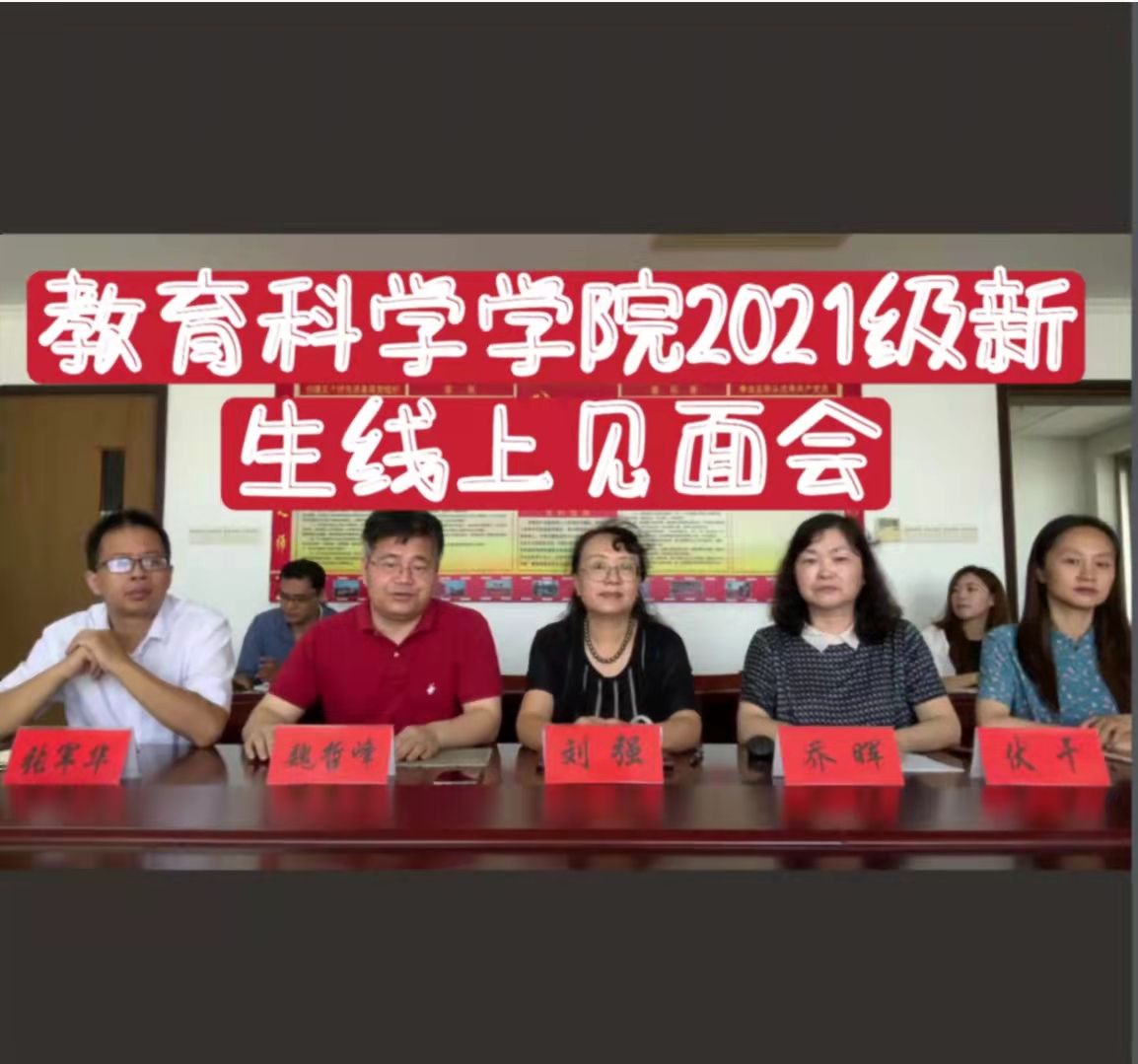 线上见面会由五位领导组织,分别是7790cnm必发集团党委书记刘强,7790cnm必发集团院长乔晖,7790cnm必发集团党委副书记、副院长魏哲峰,江苏农村教育发展研究中心副主任、学院副院长伏干,7790cnm必发集团副院长张军华。各位领导都表示对2021级新生的关怀和期待。