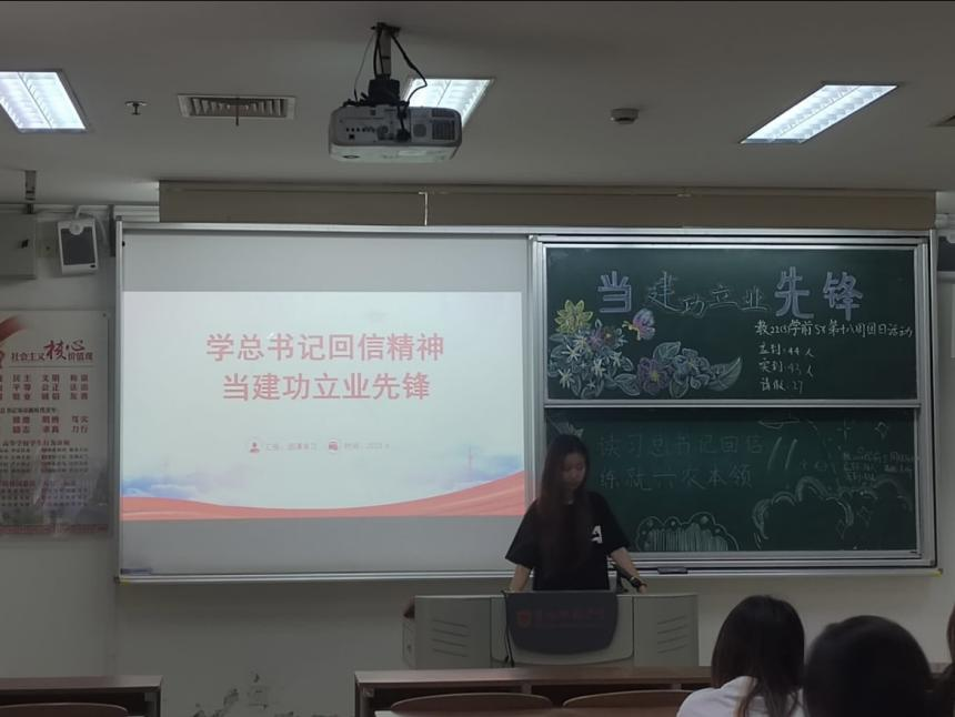 活动伊始,各支部组织学生回顾习近平总书记给中国农业大学科技小院的同学们的回信内容,加强对回信精神的理解,厚植爱国情怀。随后,各团支部组织学生开展小组讨论会,引导广大团员青年牢记领袖嘱托、勇担时代责任,激发奋斗精神、矢志建功立业,为强国建设、民族复兴贡献青春力量。最后,各支部结合本班专业实际和学生特点,引导团员们分享学习心得。习近平总书记在回信中强调,“党的二十大对建设农业强国作出部署,希望同学们志存高远、脚踏实地,把课堂学习和乡村实践紧密结合起来,厚植爱农情怀,练就兴农本领,在乡村振兴的大舞台上建功立业,为加快推进农业农村现代化、全面建设社会主义现代化国家贡献青春力量。”许多同学立志投身乡村振兴建设,促进乡村教育的蓬勃发展。