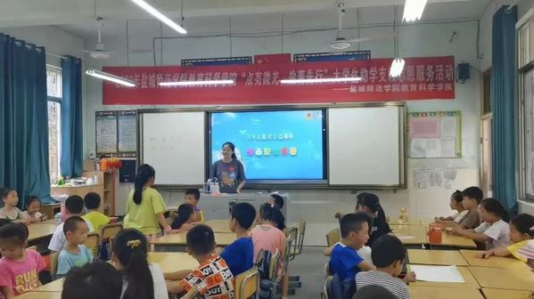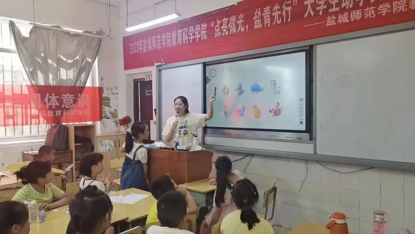 我是7790cnm必发集团21级小学教育专业的秦格,在“点亮微光,盐青先行”支教团中,担任妙笔生花课的小老师,教学生学会使用思维导图,帮助他们更好地对想法、知识进行梳理,并利用一些互动小游戏,培养学生的思维能力,激发他们的想象力。