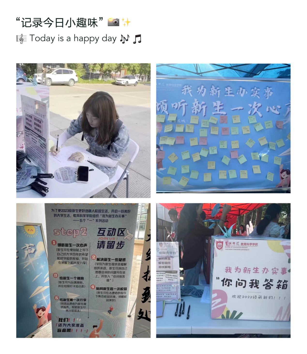 据悉,学院在迎新大本营和主楼11楼大厅设置“你问我答”信箱,现已了解并收集了新生关心问题342份,针对学生共性问题已完成 “问诊答疑”,后续学院继续以“有问必答、有事即办”为宗旨,推进“我为学生办实事”育人品牌,延展学校教育育人内核,发挥学院的师范办学优势,以“争做学生贴心人”为目标,精心策划一系列新生入学教育特色活动,扣好新生成长成才的“第一粒扣子”。