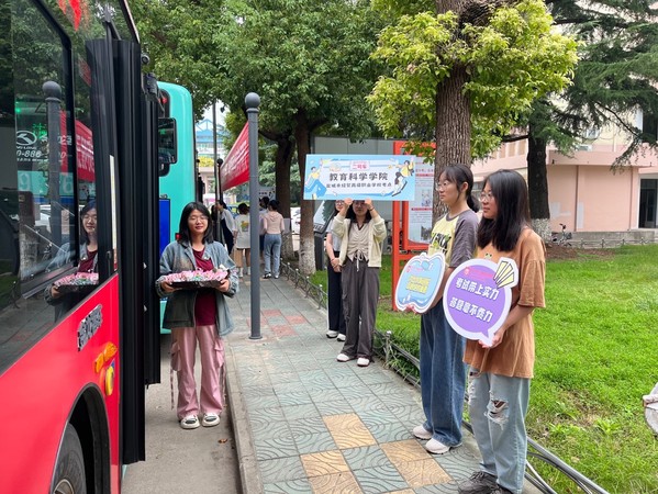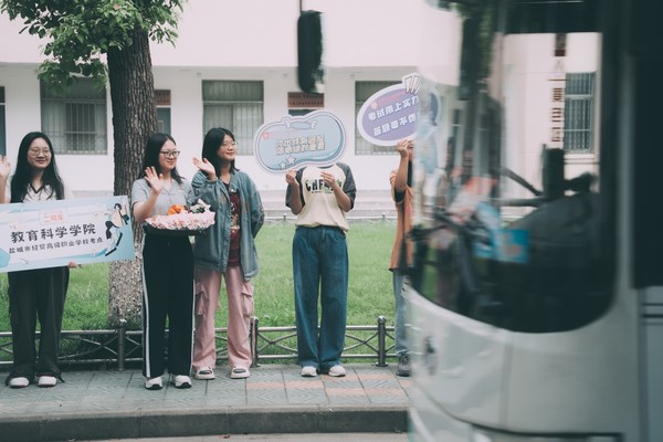 考试当天,学院领导、专业教师、学工老师和20名志愿者组成的“加油送考团”提前到达送考场地,亲手赠送为每位考生准备的“教资必过”、“自信飞扬”、“乘风破浪”、“好运连连”、“为你鼓掌”、“你超级棒”…..祝福小糖果。一遍遍提醒考生携带好考试证件和用品,一句句考试事项的提醒,一声声祝福的话语,这都是学院对每一名考生的关心。