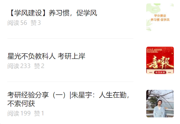 花式宣传,扩大影响。学院利用微信、展板等线上线下形式加强宣传,介绍最新研招动态和院校信息,并推送往届优秀考研学子风采,传授考研经验、学习方法以及心理自我调节等方面的心得。