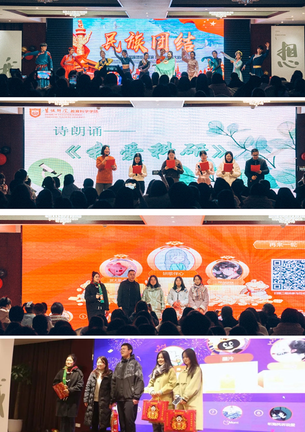 活动节目,精彩纷呈,有学前教育学生带来的舞蹈《湘云飞》;有小学教育学生带来的歌曲《童年》;有心理学系教师带来的诗朗诵《我爱科研》;也有学工及党政办教师带来的《大中国》大合唱等,一个个各具专业特色的节目轮番上阵,别出心裁,表演者们以饱满的热情充分展现着教科院师生们扎实的专业技能,不时赢得现场观众的阵阵掌声。此外,现场还开展了游戏互动环节,将本场晚会的氛围推向高潮。