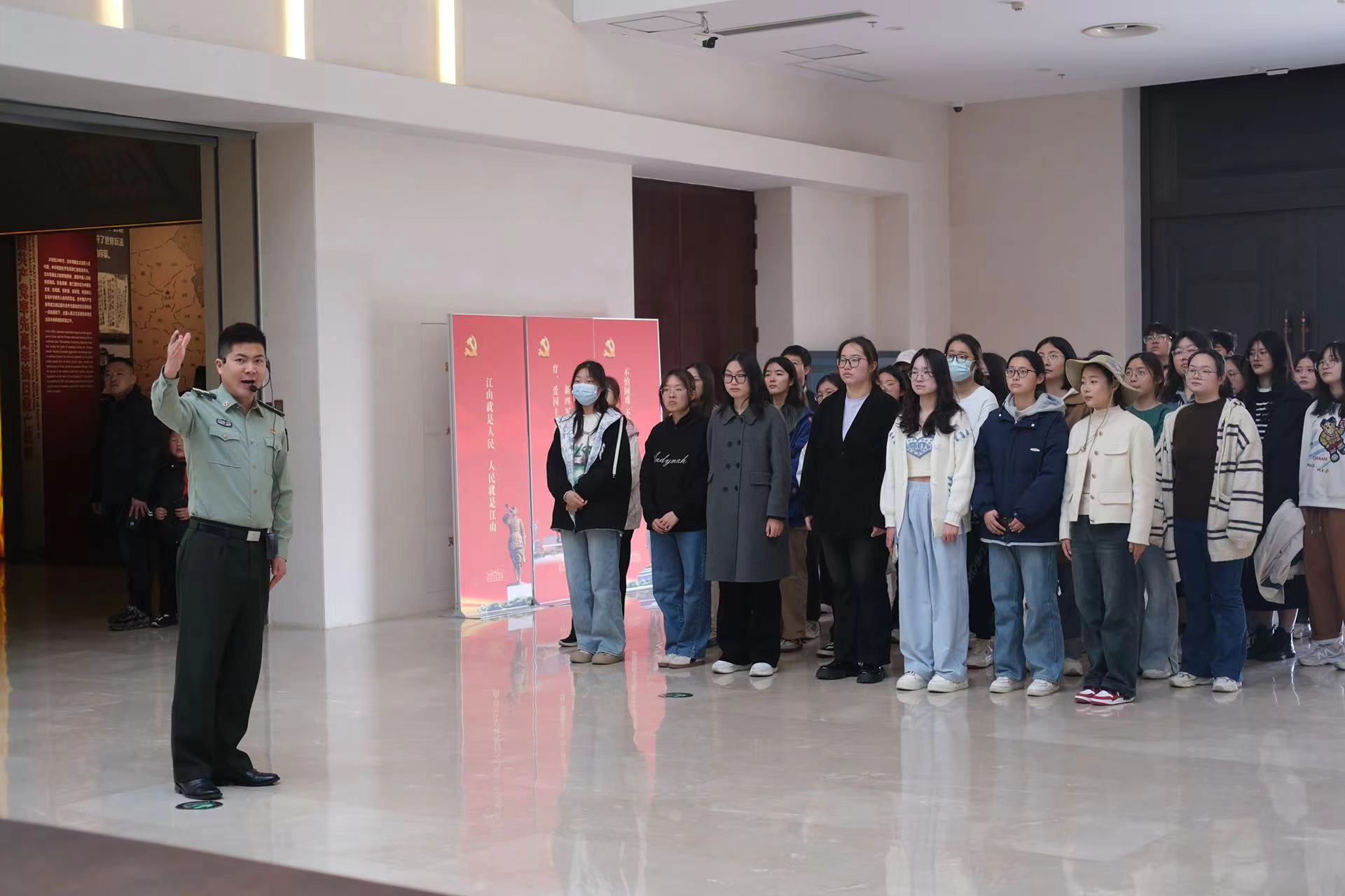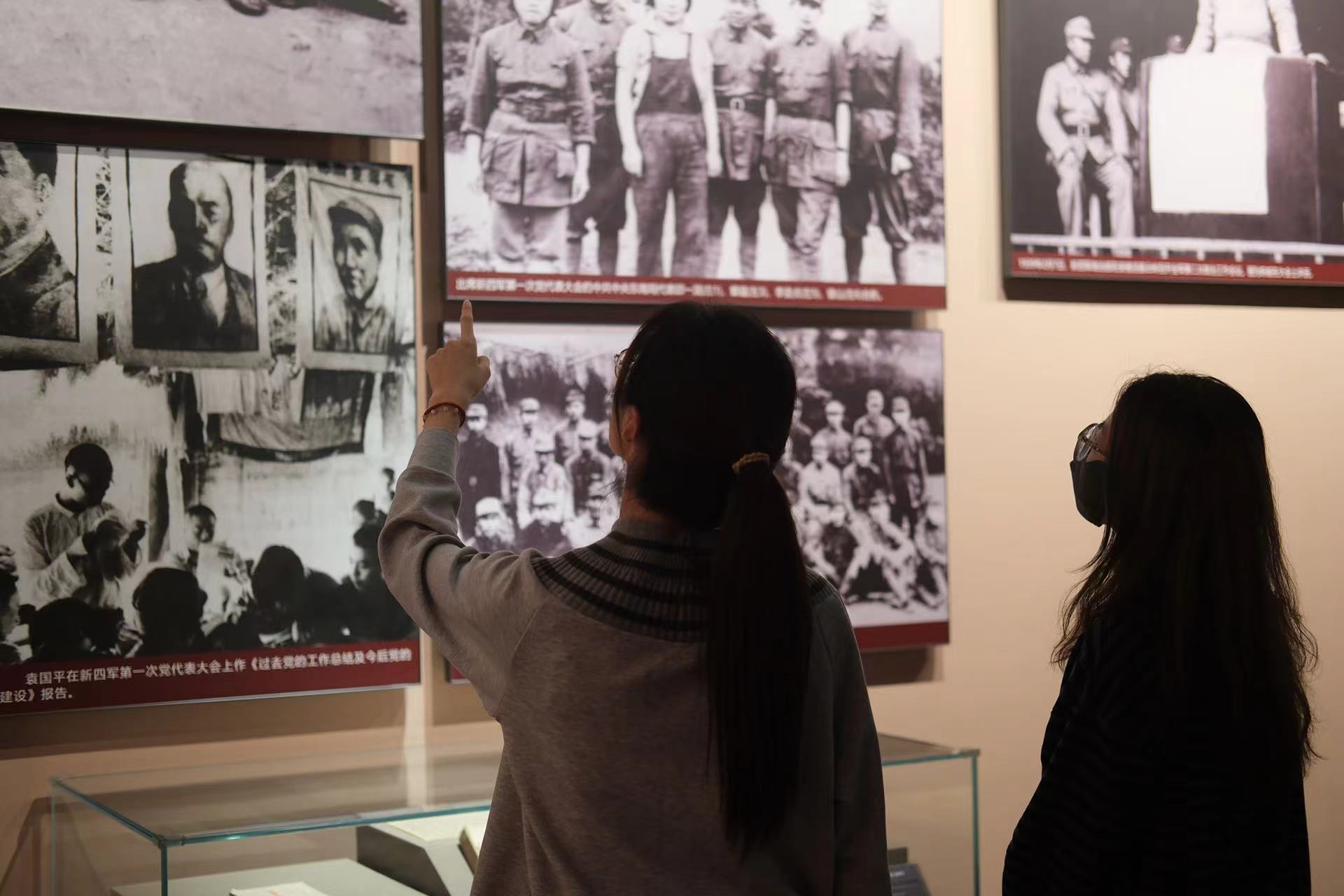 在讲解员的带领下,同学们移步新四军纪念馆展厅,认真聆听革命先烈的英勇事迹,感受革命先烈的爱国情怀。每到一处,积极分子学生代表们都仔细观摩,驻足凝视一件件实物、一幅幅照片、一份份历史资料。纪念馆变为党史学习教育的“现实课堂”,实物、照片、历史资料素材成为党史学习“生动教材”。