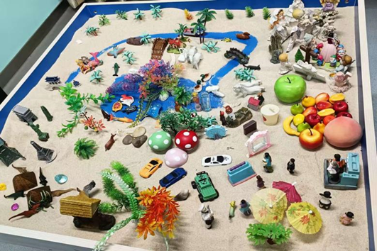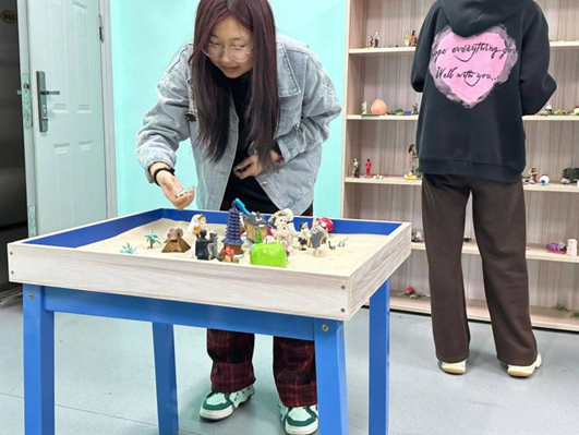 活动现场,沙盘成为了同学们展现内心世界的舞台。大家一次次在沙盘中摆放各种玩具模型,通过这一过程表达内心的情感与冲突。同学们自由演绎,发展想象力和创造力,相互协作,共同完成设计了一系列富有挑战性和趣味性的沙盘场景。通过此次活动,不仅增进了彼此间的了解与信任,还学会了如何更好地处理人际关系,提升团队沟通与合作能力。