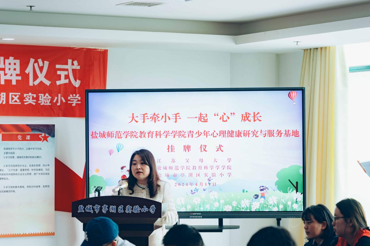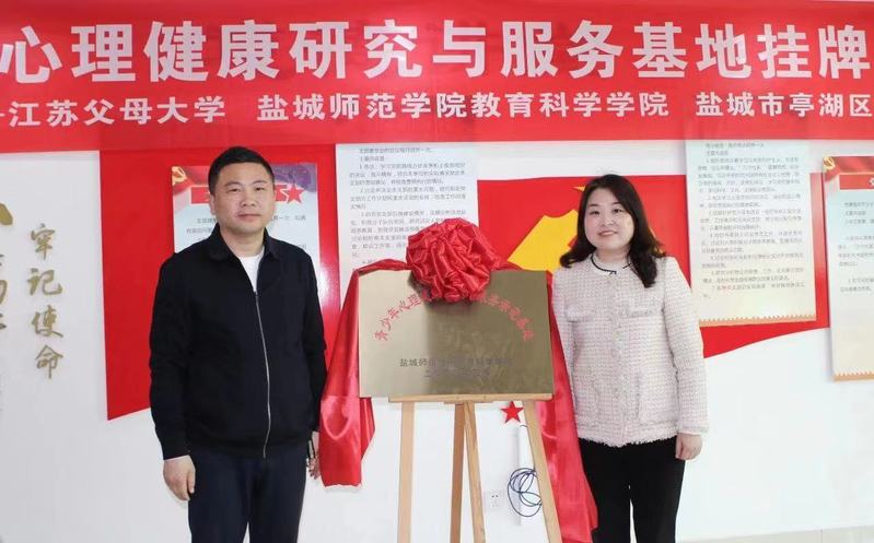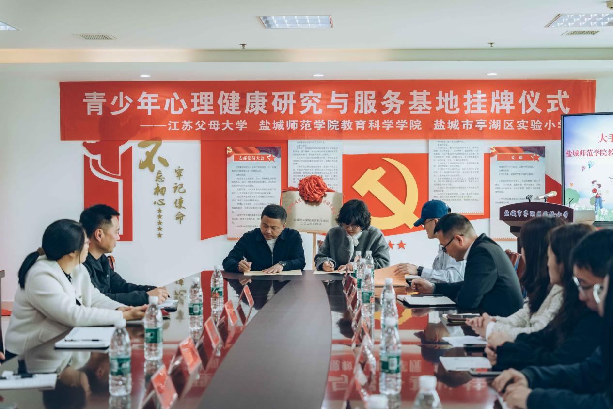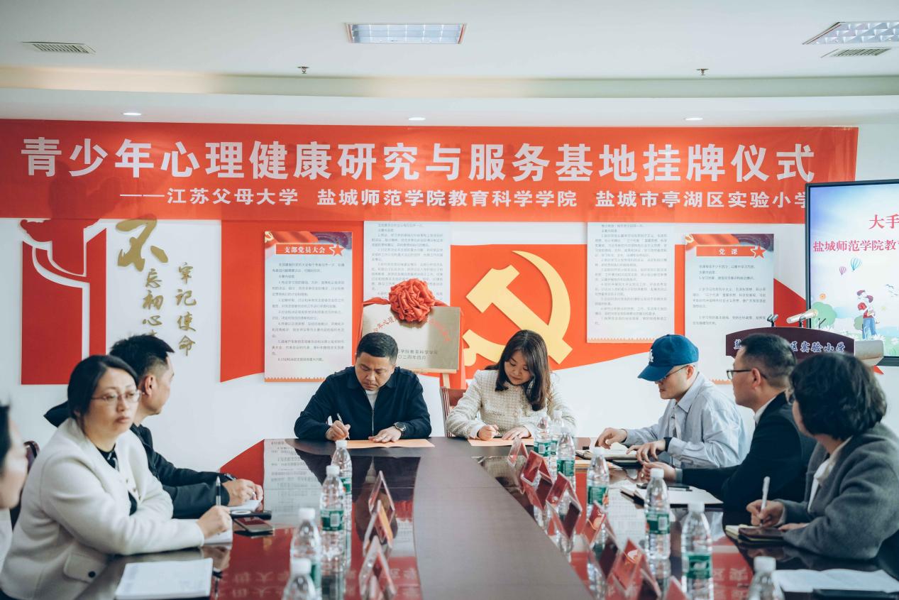 活动现场,翟永灿与杨日晨共同为青少年心理健康研究与服务示范基地揭牌并签订协议;党委副书记海英同翟永灿签订“心语心苑”辅导员工作室与亭湖实验小学心理健康工作室合作共建协议书。