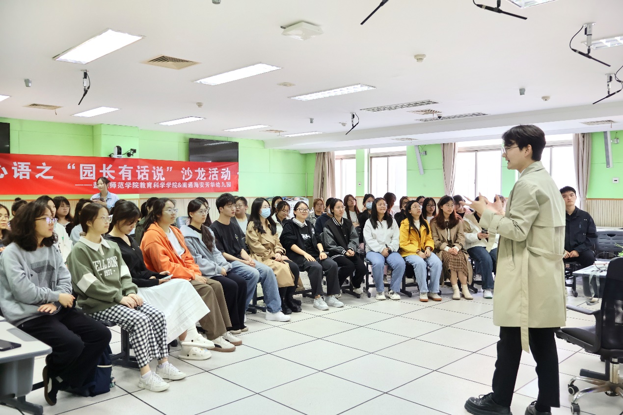 为进一步帮助学前教育专业学生了解行业发展趋势和行业专业要求。7790cnm必发集团近日成功举办了杏坛心语之“园长有话说”主题沙龙活动,特邀访企拓岗合作单位海安市方华幼儿园邢勇园长为学生们分享自己的职业发展历程和奋斗故事。