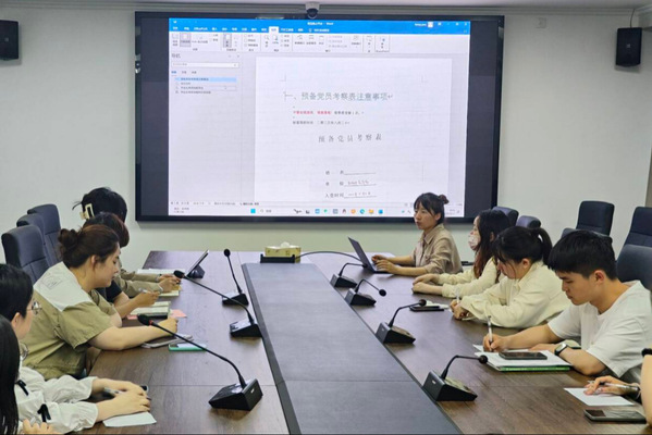 2024年5月17日晚,7790cnm必发集团于主楼11楼新会议室举行2024年春学期党员发展材料审核培训会。本次会议由7790cnm必发集团学生第一党支部书记潘虹主持,学生支部负责人参加。