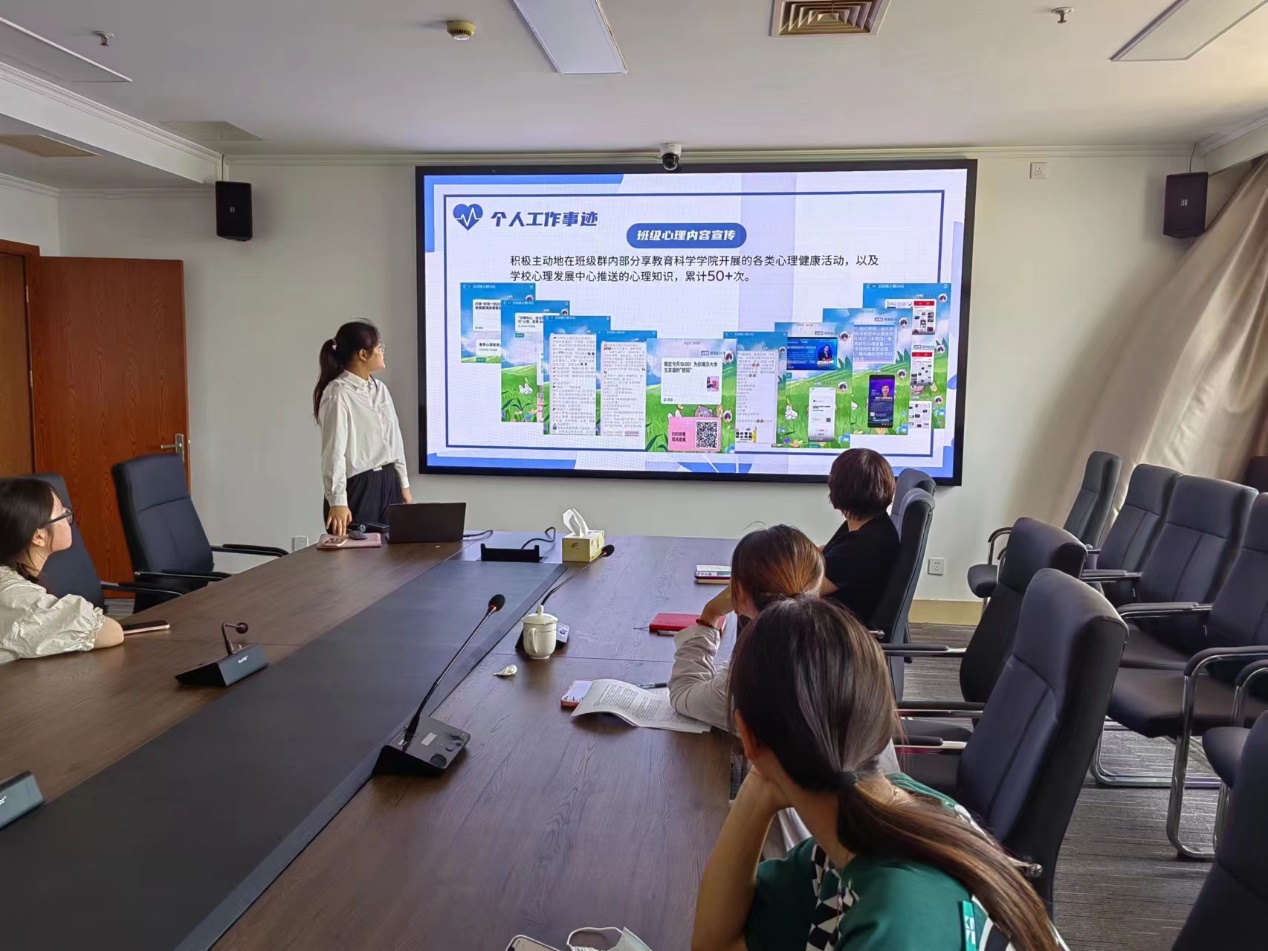 会上,首先请心理委员依次入场进行简单自我介绍;其次,通过精心设计的提问,考察心理委员们的应变、协调、沟通、心理危机处理等能力;最后,由海书记提出指导性建议,助力学生在即将到来的学校复赛中取得优异成绩。