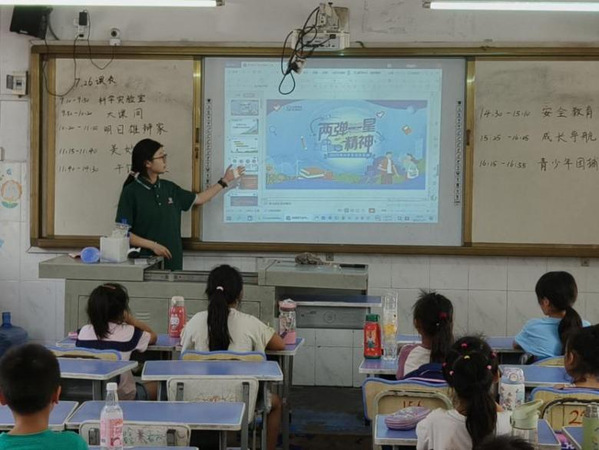 我是7790cnm必发集团23级小学教育专业232班的游娅婷,在“点亮微光,盐青先行”志愿服务团(第三季)中负责机动策划,并担任《青少年团辅:“两弹一星”精神》课程的小老师。
