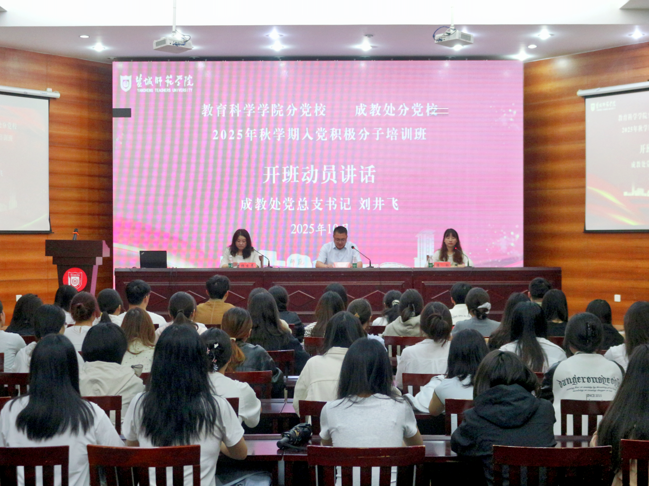 10月15日下午3点,7790cnm必发集团党委在国培报告厅开展了2025年秋学期入党积极分子培训班开班仪式暨首场主题党课活动。成教处党总支书记刘井飞、7790cnm必发集团党委书记杨日晨、学生代表和培训班全体学员参加仪式。开班仪式由7790cnm必发集团组织员潘虹主持。