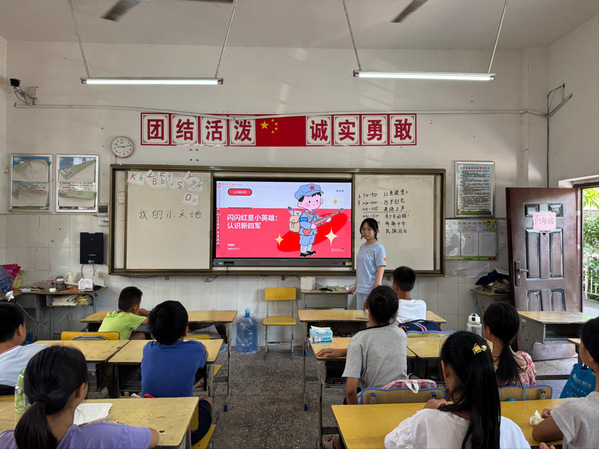 初到高尚镇中心小学,孩子们眼里的好奇像山间的星星一样明亮。有一次讲到新四军臂章时,我刚画出新四军臂章上的文字“N4A”,就有个男孩举手说:“这个好像奥特曼的标志!”这个新奇的比喻让我感到震撼——原来在孩子们的心中,历史是如此的鲜活。