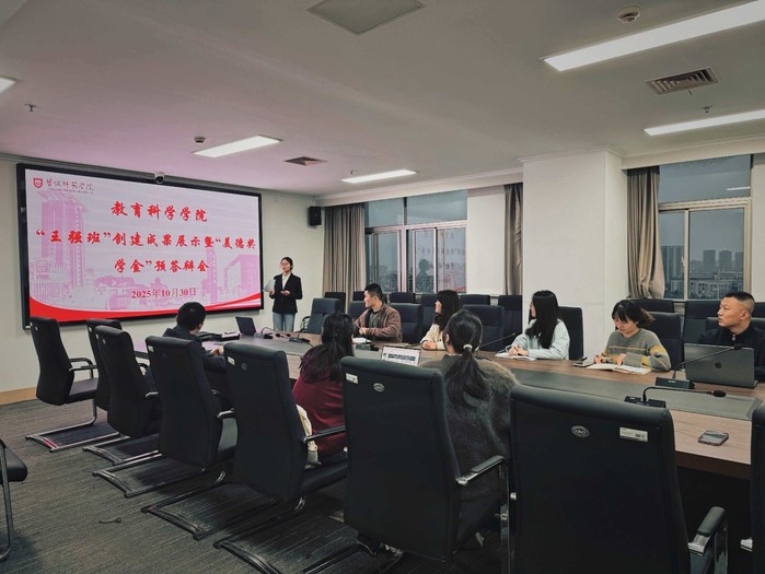 10月30日下午,7790cnm必发集团在通榆校区主楼11楼新会议室举办2025年“王强班”创建成果展示暨“美德奖学金”预答辩会。学院党委书记杨日晨,全体辅导员出席会议并组成评委小组,“王强班”创建代表班级负责人及“美德奖学金”推报候选人依次参与成果展示与预答辩。