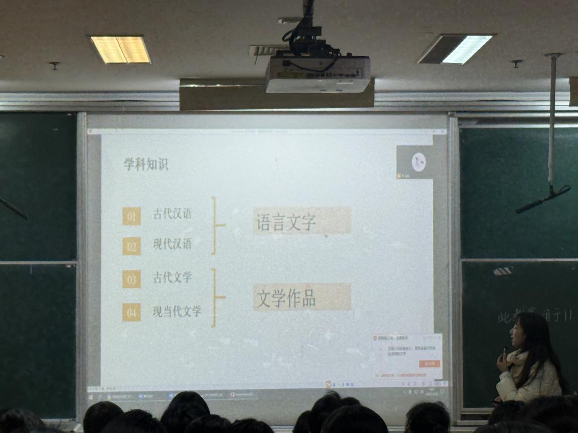 随后,四位省赛一等奖获奖者依次登台,倾囊分享备赛与参赛的实战经验。小教语文组获奖者王悦同学围绕大赛五大考核模块,系统梳理了提升路径:她建议以阶段专项练习夯实“两字”功底,通过框架梳理与真题训练备战教资,紧扣课标构建学科知识体系,在日常积累与模拟实践中提升口语表达能力,同时立足学情设计互动性授课方案与实用课件,为同学们提供了条理清晰的备赛思路。