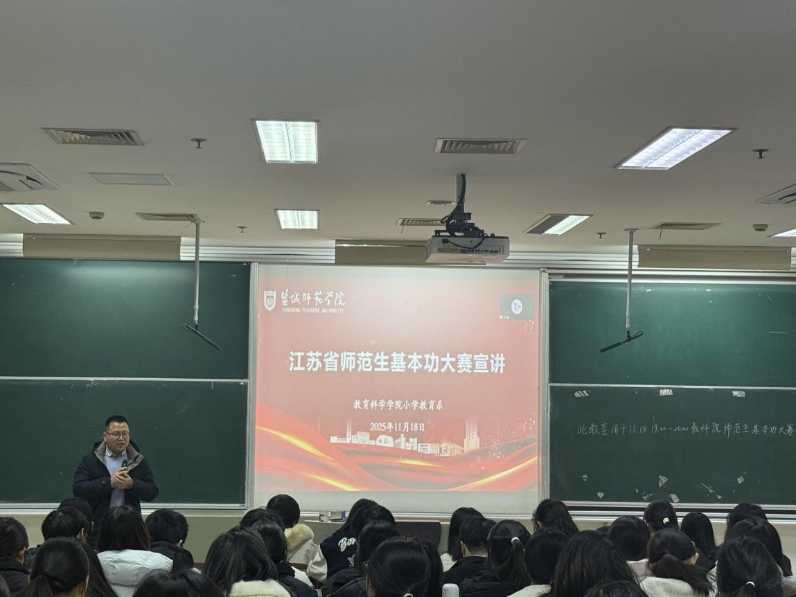 活动伊始,张权力主任深刻阐释了大赛训练及获奖对师范生职业生涯的重要意义:“江苏师范生基本功大赛备赛既是打磨专业本领的‘练兵场’,更是未来求职竞岗、职业进阶的‘入场券’,能帮助大家提升自我专业能力短板,专业素养实现整体蜕变,为将来成长为卓越小学教师奠定坚实基础。”一番恳切话语,让在场学生对赛事价值有了更清晰的认知。