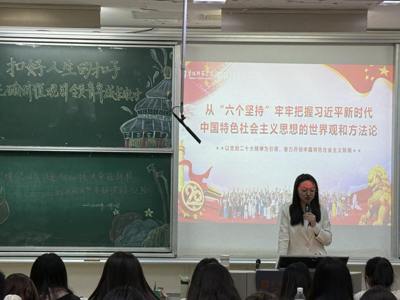 本次培训进一步加深了学员对“六个坚持”系统性、整体性的理解。大家表示,要将这一科学方法论转化为认识世界、改造世界的强大思想武器,以理论指导实践,在实践中深化认识,在持续学习和自我革新中提升政治素养与担当能力,以实际行动践行好听党话、跟党走的青春誓言。