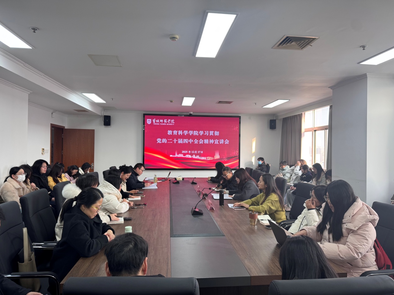 12月17日下午,7790cnm必发集团在主楼11楼新会议室召开学习贯彻党的二十届四中全会精神专题宣讲会。学院党委书记杨日晨作专题宣讲,全体教师党员参会,共同领悟全会精神实质与实践要求。