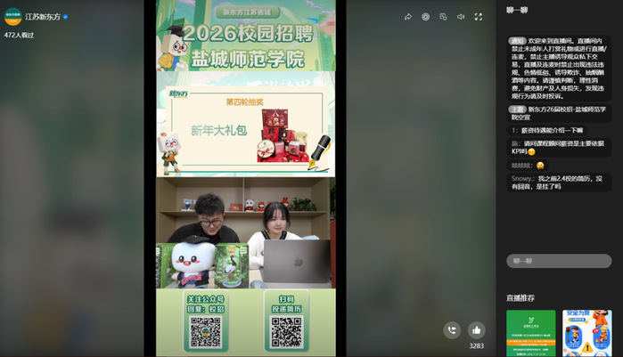 校企对接促就业。近期,学院成功举办新东方教育集团线上专场招聘宣讲会,近500名学生参加。宣讲会上,新东方教育集团代表围绕企业发展历程、业务布局、岗位需求及薪酬福利体系进行了全面介绍,并对教学、运营等岗位的任职要求和职业发展路径作了详细解读。互动交流环节中,毕业生踊跃提问,企业代表耐心解答了有关岗位职责、薪资待遇及职业规划等问题,活动还设置了抽奖互动环节,直播间气氛热烈。本次宣讲会为毕业生与优质用人单位搭建了直接、高效的沟通平台。