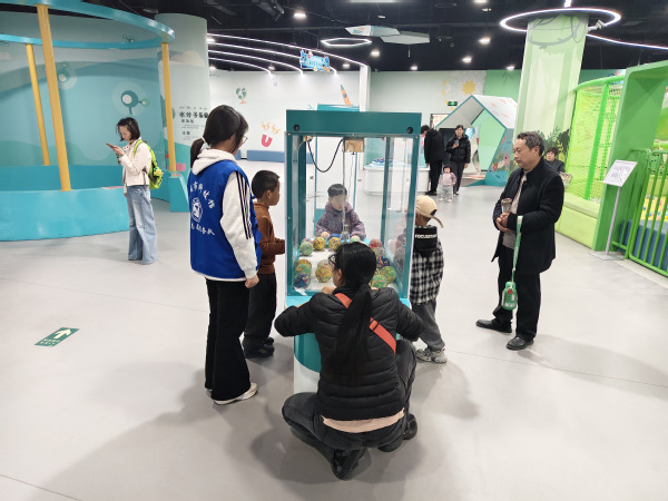 活动前,志愿者们与科技馆工作人员精准对接,系统研习展区分布、展品操作规范及安全须知,为服务开展筑牢基础。在儿童科技乐园,志愿者们化身“科普引导员”,用通俗直白的语言为孩子们拆解互动展品背后的科学原理,手把手鼓励大家大胆尝试。面对个别孩子的紧张情绪,他们耐心安抚、温柔引导,帮助孩子们克服胆怯;同时主动承担秩序维护工作,引导家长与孩子有序排队,全力营造安全有序、趣味十足的体验氛围。