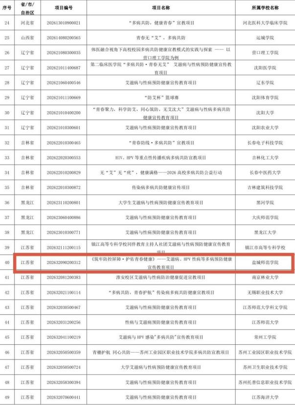 此次入选,是学院在公共卫生宣教与健康育人领域的重要突破。下一步,学院将严格对标项目要求,细化实施方案、强化过程管理,高标准推进各项宣教任务落地见效。全院师生将以专业素养与实干担当,面向全校普及科学规范的传染病防治知识,全面提升师生健康素养与自我防护能力,筑牢校园健康安全防线,为建设平安健康校园、守护师生身心健康贡献盐师力量。