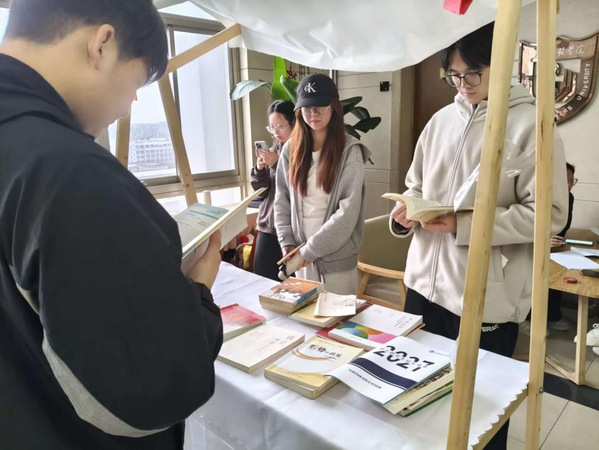 活动现场,文学名著、科普读物、哲学经典、历史传记等各类书籍吸引了众多同学,大家或驻足翻阅、轻声交流读书感悟,或认真挑选心仪书籍,主动分享自己的阅读故事与藏书心得;工作人员有序引导,细致登记同学们捐赠的书籍,同时为大家介绍各类书籍的核心内容与阅读价值。现场氛围十分热烈。