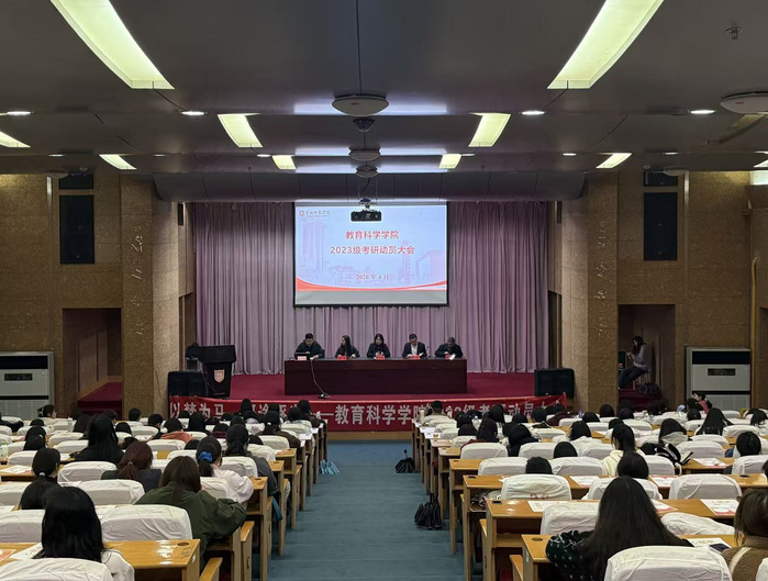 教育科学院党委副书记、院长柴江作动员讲话。他从三个方面展开深入指导:一是思想上要主动完成从“被动升学”到“主动规划”的转变,正视高层次教育人才需求趋势,理性看待考研价值;二是路径上要科学抉择,综合学术资源、地域因素、竞争强度与培养方向,结合自身基础与兴趣做出最优选择;三是方法上要高效务实,以“科学规划、持之以恒”走好备考每一步,从容自信迎接挑战。